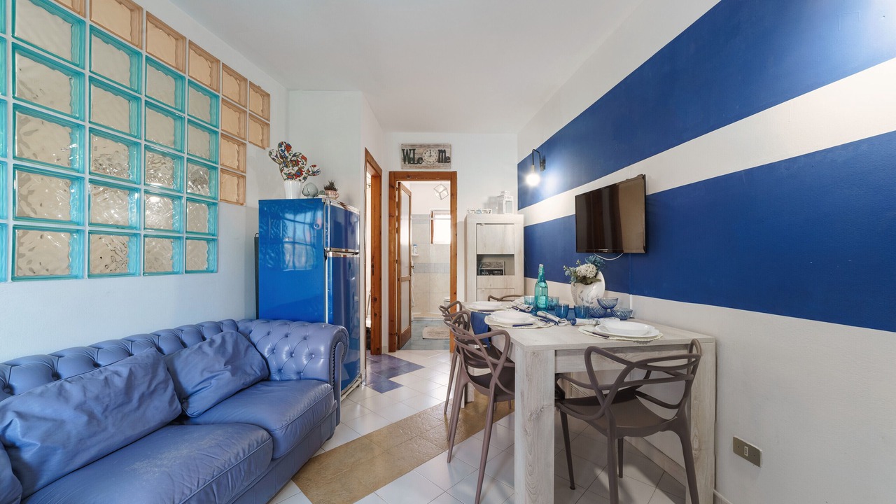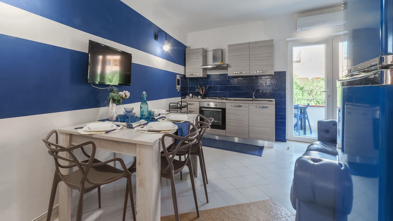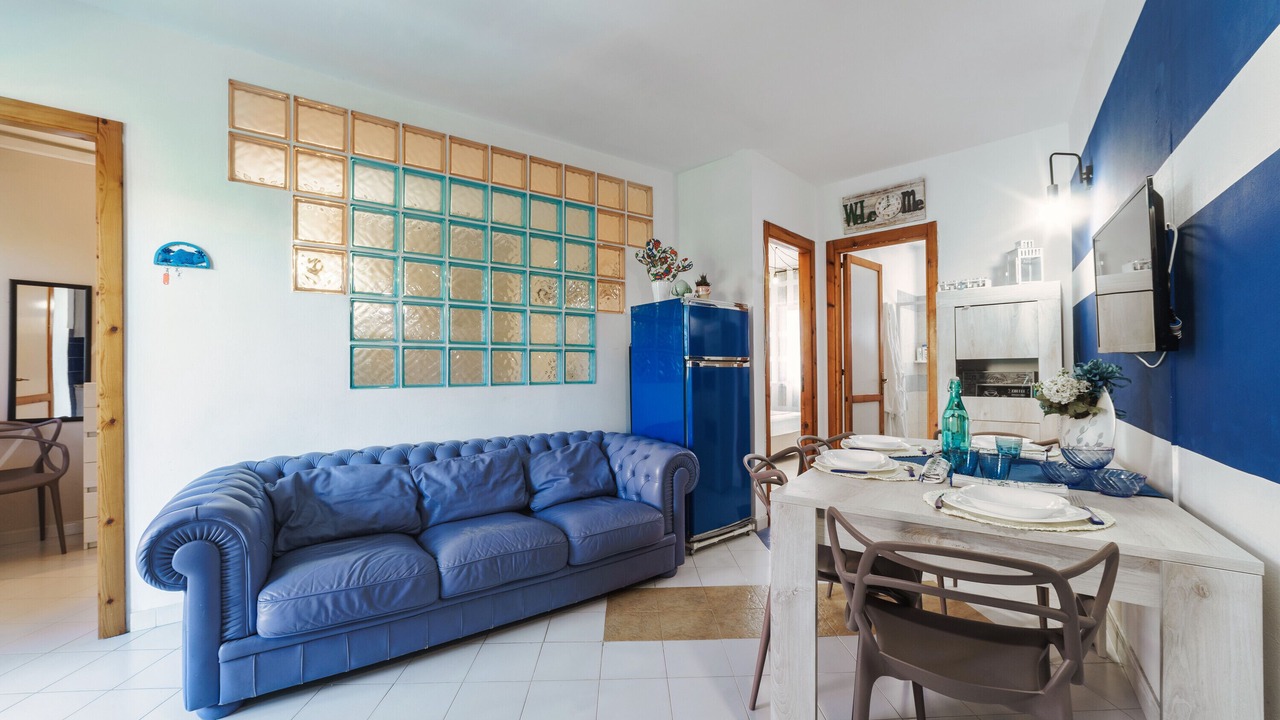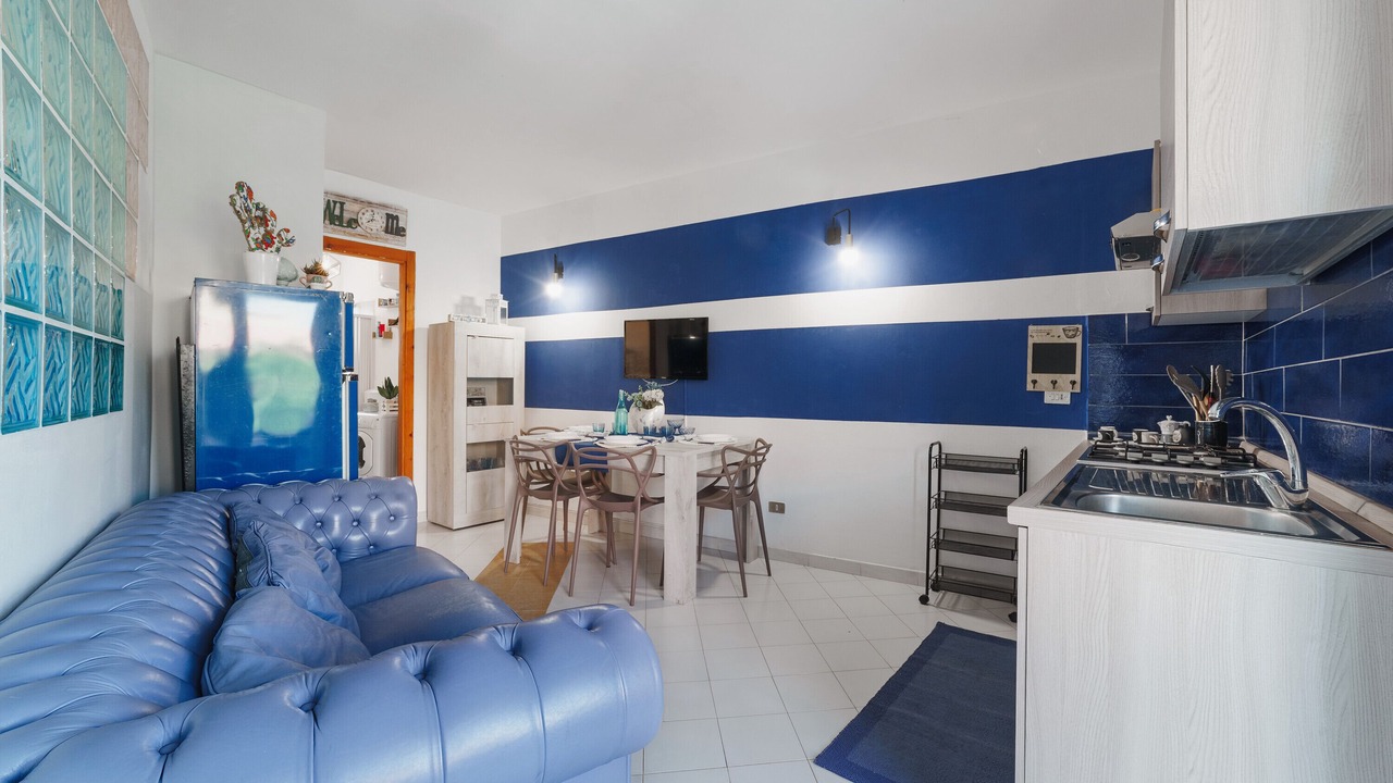 The holiday apartment Blu Marine By Salentoltremare is located in Lido Marini and is the ideal accommodation for a relaxing getaway. The 55 m² property consists of a living room, a kitchen, 2 bedrooms and 1 bathroom and can therefore accommodate 4 people. Additional amenities include high-speed Wi-Fi (suitable for video calls), a TV, air conditioning as well as a washing machine. This vacation rental features a private balcony for your evening relaxation.