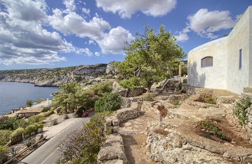 The house, located close to the sea, has private parking and a beautiful sea view over the renowned Canale del Ciolo. Inside there is a large living room with two bedrooms (doors not present, only curtains) and a complete bathroom. Separate full kitchen accessible only from the outside. The house internally has very thick walls capable of always offering you a fresh environment.