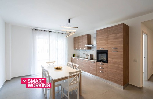 Splendid flat, in a recently built residential complex, in a very quiet street within walking distance of the historic center of Fasano.The apartment is on the ground floor of a building with a lift. The entrance opens onto the very bright and carefully furnished living area. Here there is an open-plan kitchen equipped with all amenities including a dishwasher and an oven, a dining table, a sofa, and a TV.The sleeping area consists of two bedrooms, both with a queen-size bed. A bathroom with a shower completes the layout.Free wifi, air conditioning, and central heating will be available in the accommodation.Guests will benefit from an outdoor parking slot outside the property.Cot available upon request, at an extra cost of 25€ per stay.*Upon arrival or a few days before arrival it may be required to pay a tourist tax, which varies according to local regulations. You will find your reservation details within the Guest Area of Wonderful Italy.Fasano, located straddling the provinces of Brindisi and Bari, is dominated by the hills of the jungle that gently slope toward the sea through an endless expanse of thousand-year-old olive trees and characteristic farmhouses. The charming historic center is lime-dyed and the numerous churches in the alleys characterize the setting of the place, along with the imposing historic buildings that tell of this town's glorious past. Piazza Ciaia, the Torrione delle Fogge, and the Church of St. John the Baptist are definitely worth visiting. The hilly area of Selva dominates the city with its villas surrounded by greenery and the Minaret. To the east, on the other hand, you reach the seaside villages, particularly Savelletri and Torre Canne, as well as the Archaeological Park of Egnatia. Just a few kilometers away is Cisternino, a village recognized as one of the most beautiful in Italy; Alberobello, whose famous trulli have been a World Heritage Site since 1996; Ostuni, the famous White City; and Monopoli and Polignano a Mare, ancient fishing villages with a charming historic center and beautiful beaches. To the north (60 km) we find Bari, the gateway to the East, while proceeding south we first encounter the Torre Guaceto nature reserve, then Brindisi to reach Lecce, the capital of Baroque. Moving westward there is Taranto, the heart of Magna Graecia, and finally to Matera, characteristic of its Sassi and European capital of culture.The nearest airports and ports are Brindisi (45 minutes) and Bari (50 minutes).