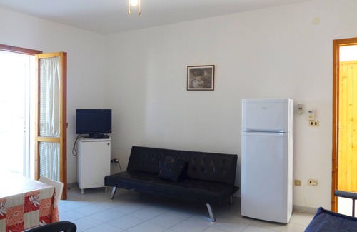 The small apartment is located inside a mini residence, on the first floor of a structure on two levels and consists of n. 1 double bedroom with the addition of 1 single bed, dining room with kitchenette and double sofa bed, n. 1 bathroom with shower / box, washing machine, ceiling fan, small terrace equipped with table and chairs for outdoor dining. Parking place with shading inside the mini residence.