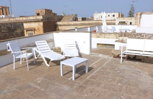 Terrace with solarium, deckchairs, chairs and panoramic view of the square with breathtaking sunsets!