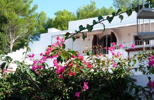 Villa Morocco is a beautiful Mediterranean villa, surrounded by a mature, extensive, and luxuriant garden, all fences The villa stands in a magnificent sea view location between the coast villages of Pescoluse and Torre Pali. The villa is very close (only 1500 metres) to the beautiful white sand beaches and crystal-clear Ionian Sea (blue flag). The famous cliffs and caves are also near, just 9km away. Villa Morocco is conveniently situated for sightseeing as it is quite near (only 7 kilometres) to the highway, thus making the tourist towns easy to reach. The villa is shaded by tall pine trees and in its grounds there are also olive, citrus and fruit trees, flowers and rose bushes, and the aromatic plants of the Mediterranean bush. The villa is built around a large inner court with potted plants and it is divided into self-standing, completely independent properties. Each property has two doors, (one leading to the patio and one to the inner court), its own private outdoor areas (large shaded patio, roof terrace) in addition to the villa garden, and a covered parking space inside the gates. From the villa and the grounds you can enjoy delightful sea views.