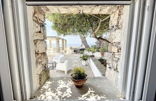 If you are looking for a place of relaxation, then look no further: our stone house, located in the nature reserve “Parco Naturale Regionale Otranto-Santa Maria di Leuca”, on a fantastic hillside over the cliffs of the Adriatic, about 80 meters above sea level, with a panoramic terrace and heated outdoor whirlpool, awaits you for your perfect break.Forget the difficult times of lockdown and the stress of everyday life: everything is very far away here. In the morning you will be among the first in Italy to see the sun rise from the sea on the southeast tip of Italy’s heel. And in the evening you can end the day with an aperitivo on the terrace and maybe relax in the outdoor jacuzzi set to your preferred water temperature (max 40 C) and enjoy the breathtaking view.The house has a simple but cozy maritime interior. It has two bedrooms, one with a double bed and the other with three single beds, two of which are usually joined as a double bed.There are also two bathrooms with shower and a spacious dining living room with a kitchenette including a fridge, freezer and gas stove. Crockery, cutlery and cooking utensils are available, as is a coffee machine (moka or French press).The house consists of two parts that are on different levels and have separate entrances. Here you rent the upper part, which is marked with the letter A (see photo gallery). The two parts of the house are spatially separated from each other by stone walls, canopies and plants and cannot be seen from the other unit. Neither indoor nor outdoor spaces are shared with the other guests; the terrace and whirlpool are also exclusively for you. Only the washing machine is shared. Larger groups can rent both parts of the house (max 10 guests).The whirlpool (dimensions approx. 200x200cm) will be opened for you on request; it can be used all year round, including (or even more so!) in winter. The surcharge is €80 for the preparation €20 per day, which includes the cleaning and disinfection of the whirlpool approx. Twice a week and with every guest change.You can reach the house from the private car park via stone stairs (relatively steep). The coast in the area is very rugged (you can visit some of the sea caves under the house by boat from Santa Maria di Leuca), so the sea cannot be reached on foot. The nearest sea access is in Leuca (approx. 3 km, including a small sandy beach) and the famous Ciolo Fjord (approx. 5 km). The extensive, golden sandy beaches of the Ionian coast (e.g. Pescoluse, Maldive del Salento and then on towards Torre San Giovanni) can be reached in about 20 minutes by car. There are several supermarkets and excellent restaurants within 5 km. You can rent boats or book boat tours in Santa Maria di Leuca. Sheets, duvets and towels are not included. If you don't want to bring them with you from home, regardless of the length of your stay, you can rent them for €24 per person. Final cleaning is not included and costs €100, unless you clean yourselves before departure. Dogs and pets are allowed (max 2 dogs or pets, surcharge €100 per dog/pet). You will need to inform us in advance. We will ask you to pay a security deposit of €600 before arrival. The security deposit will be refunded within 7 days after departure, if there is no damage. Electricity costs (and thus where applicable AC, hot water, heating etc.) are NOT included in the price and will be charged based on your actual consumption. The price per kWh charged to guests was €0,46 on 06/01/2025, when this text was last updated, but as prices are fluctuating a lot, your actual price per kWh will be communicated a few days before your arrival based on the current market price.We decided not to include electricity costs in the rent in order to: a) keep our rental prices stable despite inflation and b) incentivate our guests to use electricity responsibly, helping us to reach our sustainability goals. Thank you for your understanding. ABOUT USWe're a team of holiday enthusiasts with diverse backgrounds based between Italy and Switzerland. 🇨🇭Our mission is to find the most unique holiday homes, refurbish them and make them available to people like you, who want to live the authentic Italian experience at a high (Swiss!) quality, without spending a fortune By booking this accommodation, you accept that:- We are obliged by law to verify the identity of all our guests. We will therefore ask you to upload copies of your IDs on our (secure) website to verify your identity before handing out the key code for the accommodation. Your personal data is treated in full compliance with EU data protection laws.- Also, we are obliged to sign a rental agreement with our guests (one person per group). This will be done digitally and requires just a few seconds on your side. You can find a template of the rental agreement on our website.- Parties, gatherings, events or loud music are not allowed at this property unless explicitly authorised beforehand by us in writing.- In case the local municipality charges a tourist tax, we will ask you to pay this separately to us and we will transfer it to the local authorities as required by law.
