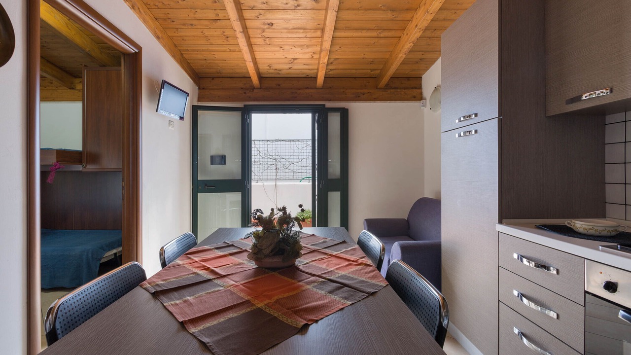 The rooms of Trilo are characterized by a wooden ceiling and consist of a living room, dining area and kitchen with electric oven. The sleeping area consists of two bedrooms (master bedroom and triple bedroom with bunk beds and single bed). The air conditioning in the living room is enough to cool the whole apartment. The accessories of the house are: the alarm system, hair-dryer, iron and ironing board, television and mosquito nets. At disposal of the guest, if necessary, a baby cot.