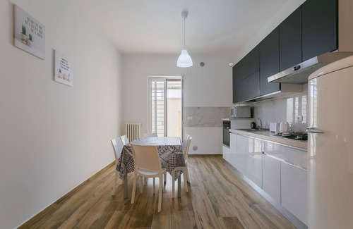 Brand-new apartment with private garage, free 1000 Mbps WiFi. La Casa di Vale is the ideal place to stay without feeling the absence of your own home. Equipped with all comforts, La casa di Vale offers 2 bedrooms, each with double bed, a full bathroom with large shower, a spacious living area with double sofa bed and Smart TV with free streaming access (Netflix, Disney Plus, Paramount Plus, Prime Video etc.), a fully equipped kitchen, and access to a partially covered and private outdoor space where you will also find the laundry area as well as access to the garage for normal-sized vehicles (no SUVs) (length 386 cm, width 172 cm, and height 180 cm). Just 10 minutes from Bari international airport, 4 minutes' walk from the town center, and with supermarket, tobacconist, hairdresser, bar, greengrocer, and much more within a few meters.