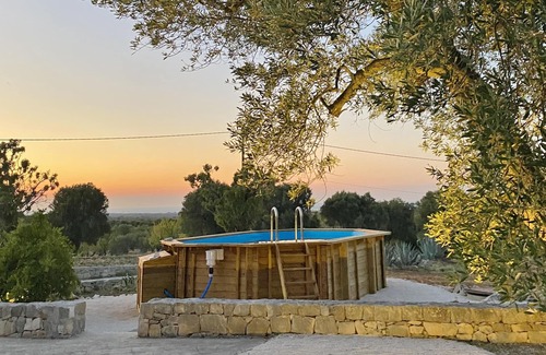 Spacious Italian villa (made of "trullo" cones), fully renovated with all comforts, immersed in centuries-old olive tree grove. Fresh during summer (also air conditioning), comfortable in other seasons, with in-floor heating. Rentable weekly/monthly (check price drop). Sea view. IDEAL FOR SELF-ISOLATION –see below. A trullo is a traditional Apulian dry stone construction dating from the 1500s. Swimming pool, inside dimensions: 553x342 cm; available June 1st-September 15th (use your own risk).